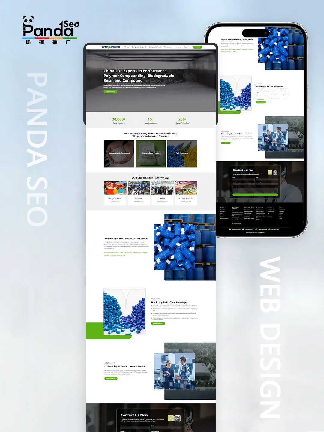 这是我们为某高分子复合材料企业打造的官网页面(附实际页展示),从框架、色系到板块的每一处设计,都精准匹配工业客户的决策逻辑,落地后该企业的官网咨询量提升40%。
