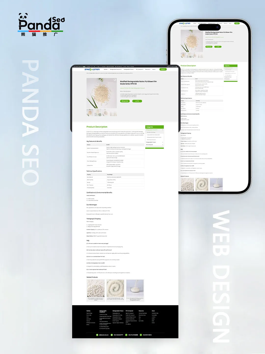 ✅ 产品页按“生物降解材料/PVC复合材料”细分(见首图产品板块),匹配客户“找对应材料”的搜索习惯;