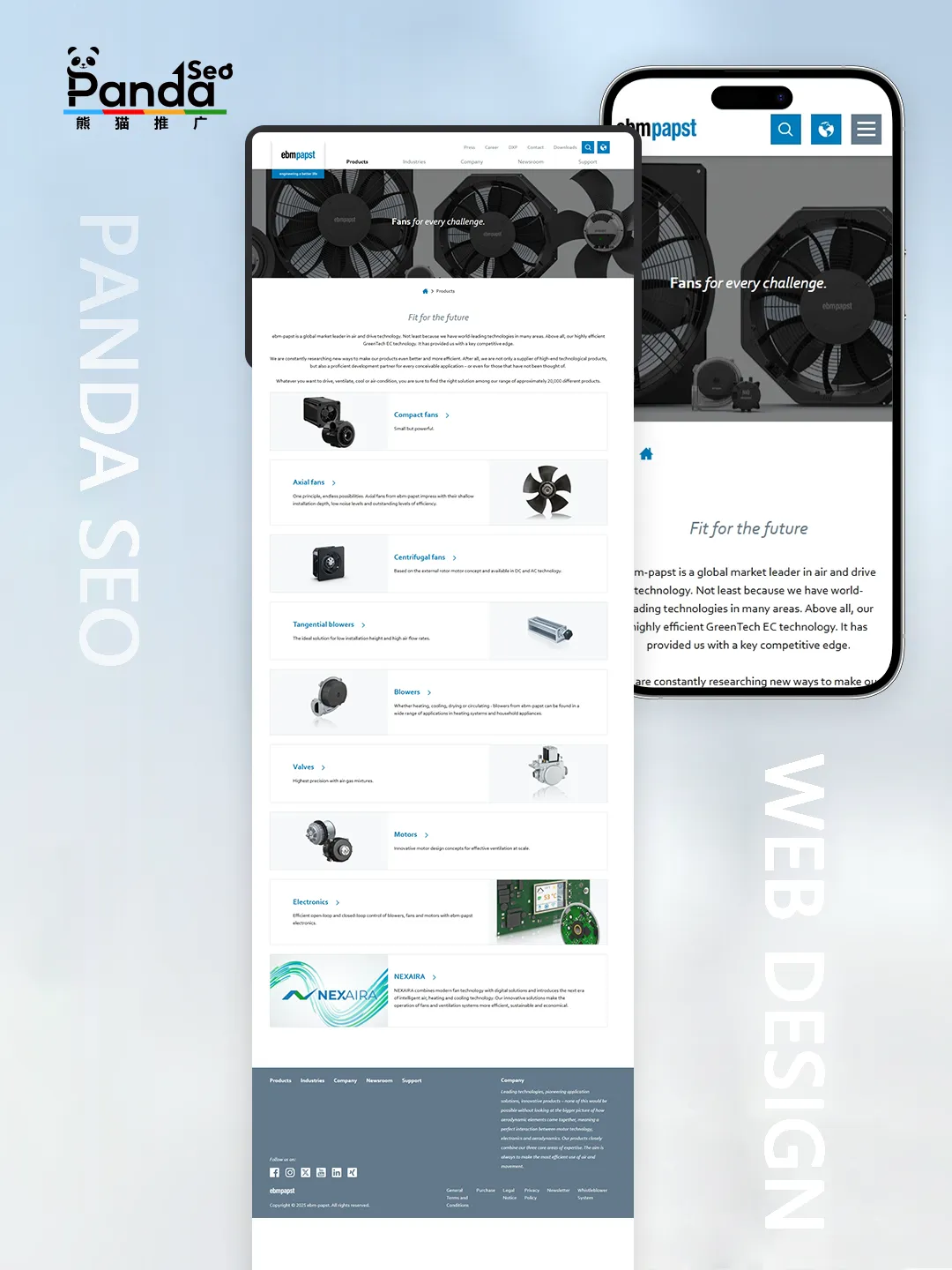 ✔️ 技术 + 案例双输出:不仅讲产品参数,还突出 “AI 驱动的数字生态系统”NEXAIRA、GreenTech EC 节能技术这些核心优势,搭配获奖荣誉(德国可持续发展奖、环境技术奖等),可信度直接拉满!
