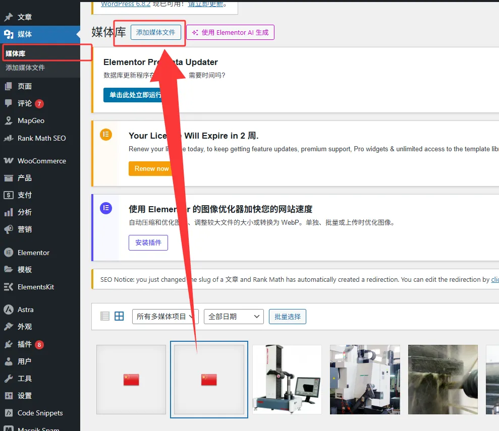 1、进入后台“媒体库”,上传国家国旗